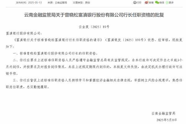 富滇银行行长曾晓松任职资格获批巴适财经• 2025-05-14 10:22:02•简讯•阅读 2 财经5月14日讯 昨日,云南金融监管局披露批复显示,云南金融监管局核准曾晓松富滇银行股份有限公司行长的任职**。 标签: 银行/ 港股异动 | 腾讯音乐绩后高开4.4%,公司在线音乐服务收入同比强劲增长 上一篇2025-05-143家药企垄断原料药被罚没3.25亿元下一篇 2025-05-14相关推荐 高新兴:算力投资标的传佳绩 标的公司成立仅2月实现近3亿收入 2024年2月28日晚间,高新兴发布投资进展公告,公告中透露了其投资的图灵新智算(广州)科技有限公司(以下简称“广州图灵”)取得了显著的业绩。广州图灵自去年11月初成立以2025-05-14 10:22:021287 简讯简讯2025-05-14 10:22:02292 MEET48 上线 WEB3感谢祭并限时推出 GIPR2活动 Top16 偶像盲盒NFT,9月23日截止8月20日消息,据官方消息,MEET48 已上线WEB3感谢祭,推出GIPR2活动TOP16的特别偶像盲盒NFT。这些盲盒内含未曾发布的稀有偶像照片,用户可通过完成MEET48 网页或APP内任2025-05-14 10:22:02165 Circle IPO冲刺50亿美元估值,稳定币有概念股了?2025 年 3 月 31 日,加密货币行业迎来一则重磅新闻。据《财富》杂志报道,美元稳定币 USDC 的发行方 Circle 正在紧锣密鼓地推进其 IPO 计划,现已聘请摩根大通和花旗2025-05-14 10:22:02156 第七届进博会|首发经济,不只是一场消费盛宴题:新华社经济随笔:首发经济,不只是一场消费盛宴 前六届进博会,近2500项代表性首发新产品、新技术、新服务亮相,不少展商在中国开出新门店、新工厂、新研发中心。2025-05-14 10:22:02155 越南知名互联网论坛XAMVN即将通过Tokenfi Launchpad平台发行其专属代币TokenFi 宣布与越南最大的互联网论坛 XAMVN 达成战略合作,XAMVN 将通过 TokenFi Launchpad 独家推出原生代币。据悉,XAMVN 成立于 2017 年,是越南最大和最知名的网站2025-05-14 10:22:02133 上半年饮料业务破百亿 统一仍在“吃老本”统一企业中国提到,“统一鲜橙多”“海之言”“统一果漾”“统一冰糖雪梨”“元气觉醒”为主要品牌。 值得注意的是,在农夫山泉的带动下,近年来NFC果汁异军突起,统一、2025-05-14 10:22:02125 观点:比特币价格或于2025年1月特朗普就任总统时升至10万美元加密货币托管公司 Copper.co 的研究主管 Fadi Aboualfa 认为,到 2025 年 1 月 20 日特朗普就任总统时,比特币的价格可能会达到 10 万美元,他补充说,这些上涨“是在美2025-05-14 10:22:02109