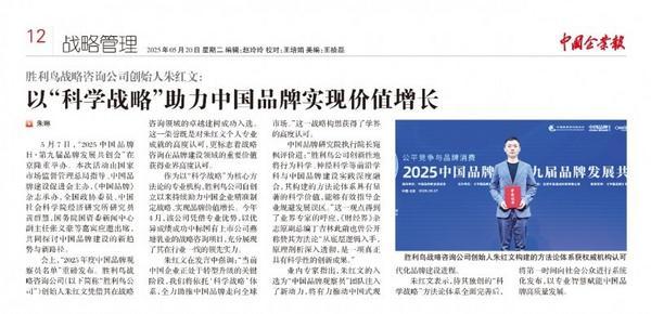 会上,“2025年度**品牌观察员名单”重磅发布。胜利鸟战略咨询公司创始人朱红文凭借“科学战略”理念,成为战略咨询领域**入选的战略专家。这一荣誉既是对胜利鸟战略咨询公司专业水平的高度认可,也标志着胜利鸟咨询公司的方**得到了业界的充分肯定。