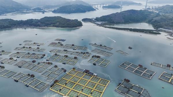 半天妖从闽威采购的鲈鱼均来自于该基地。这片波光粼粼的海面上,单体面积1亩的网箱外径26米、内径24米、水深15米,构建起1万立方米的精准养殖空间,专业科研团队自主研发的种苗正在此生长。