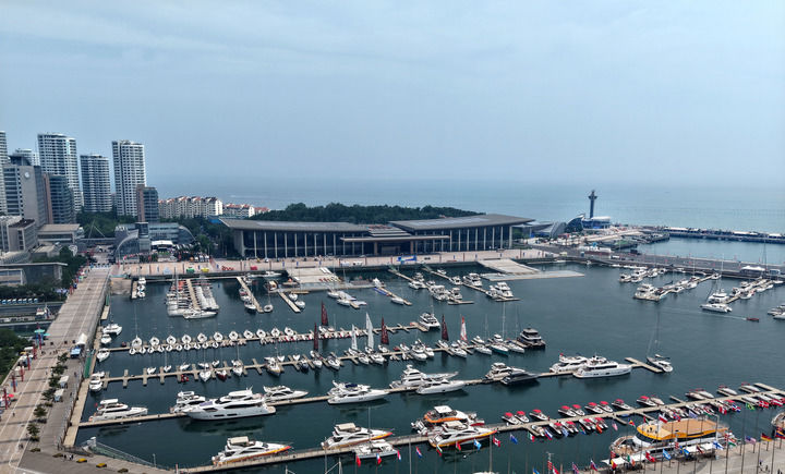 这是第六届跨国公司领导人青岛峰会举办地青岛**会议**(2025年6月18日摄,无人机照片。新华社记者 李紫恒 摄