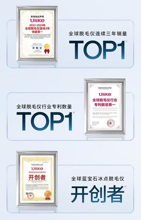 Ulike不仅在**连续10年618销售行业**,更是被认证为“全球销售**的**仪”。根据弗若斯特沙利文(Frost & Sullivan调研数据,在2016年-2024年度****仪市场中,Ulike连续9年销售**;并在2022年-2024年度全球**仪市场中,Ulike连续3年销量**。