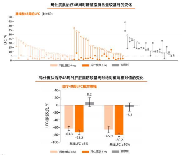 图3. 玛仕度肽在**超重或肥胖参与者中改善肝脏脂肪变性的效果:GLORY-1的探索性分析