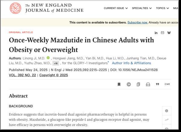 玛仕度肽在减重和改善心血管健康方面效果显著。相关研究成果已发表在**权威医学期刊《新英格兰医学杂志》上[6]。