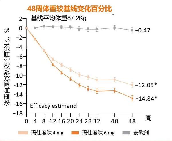 图1. 玛仕度肽和安慰剂**48周后体重较基线变化的百分比[6]
