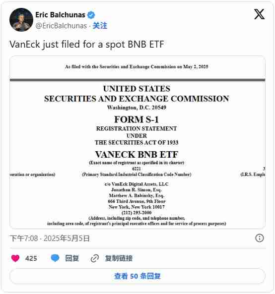 另一个备受关注的催化剂是美国投资公司VanEck提交的BNB ETF申请。市场普遍预期该产品有望在2025年内获得监管批准,若成真将吸引大量机构资金流入。