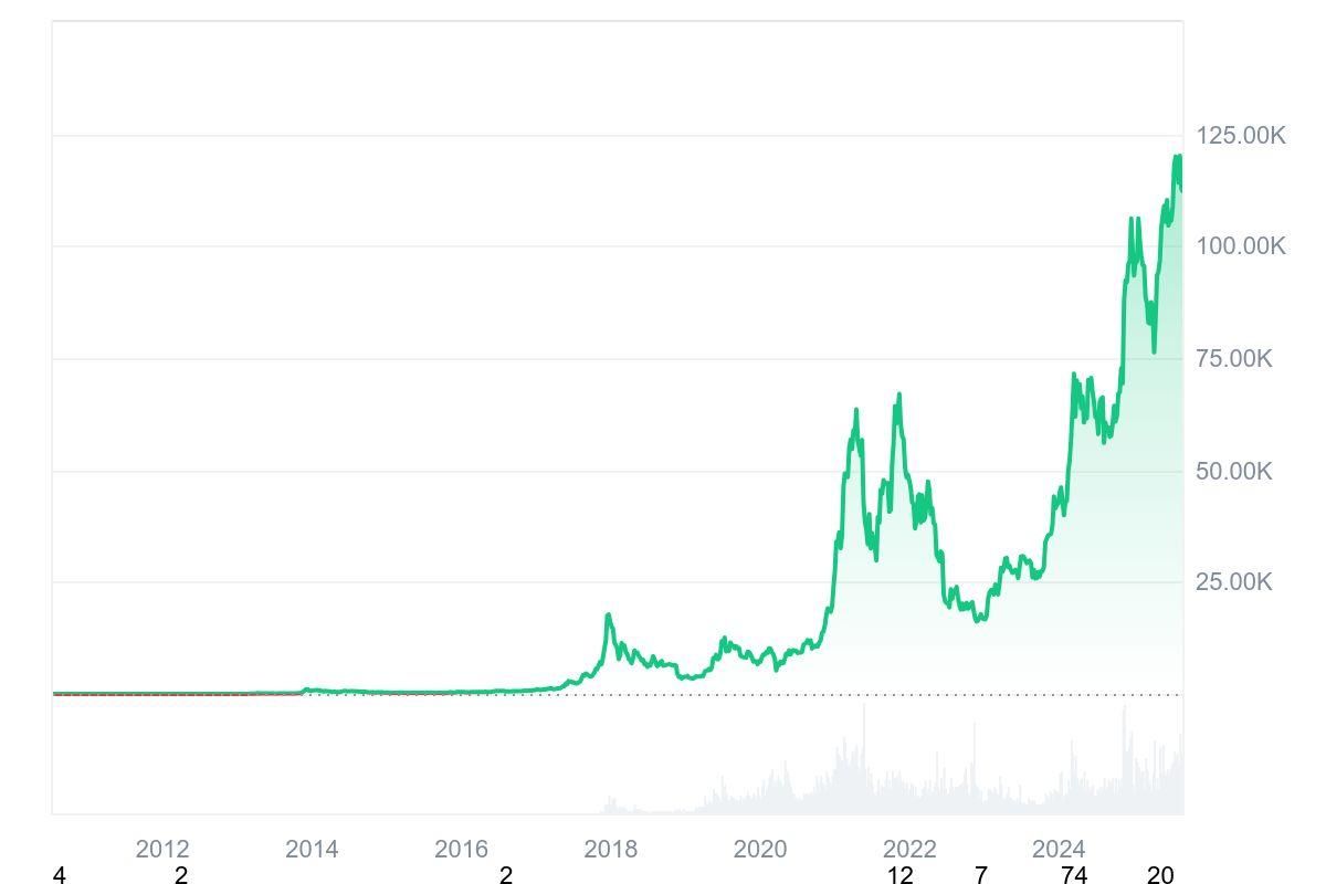 - 2023–2025年——复苏与新高:Bitcoin再次展现韧性。2024年末**突破六位数。截至2025年8月,Bitcoin价格约为11.5万美元,创下有史以来**持续水平。