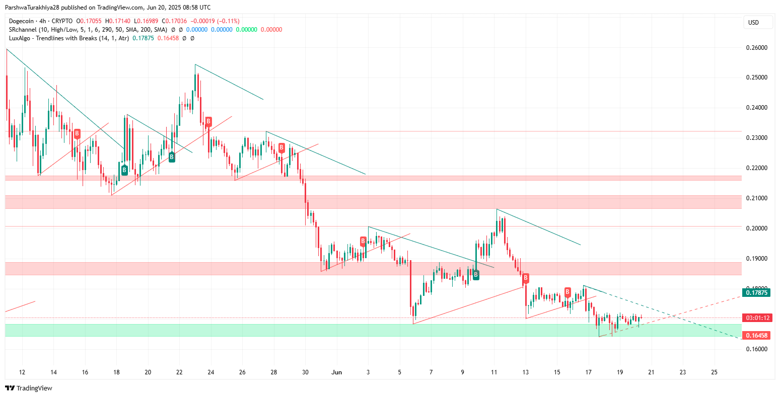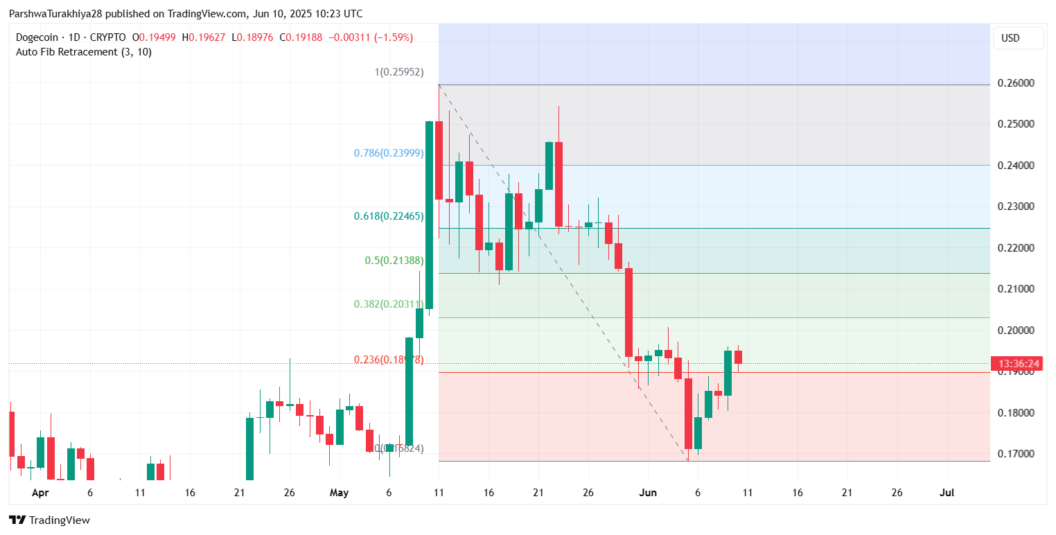 - 2025 年 6 月 11 日狗狗币 (DOGE) 价格预测:DOGE 有望突破,但面临 0.20 美元附近的上方压力