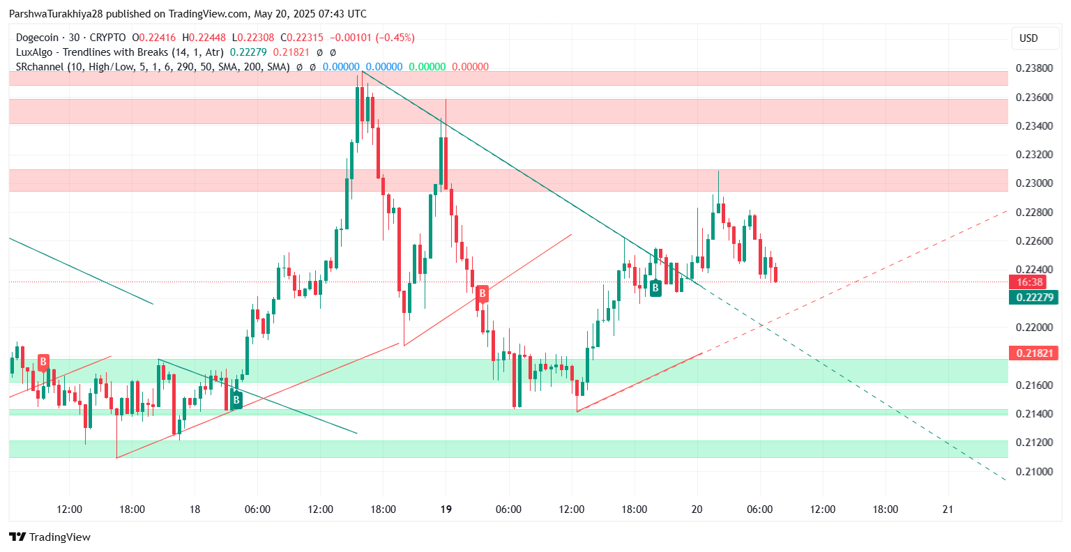 从好的方面来看,回升至 0.2230 美元上方将是复苏的**个信号,但多头必须突破 0.2345 美元且成交量强劲才能持续上涨。否则,价格可能会在 5 月下旬维持区间波动或走低。