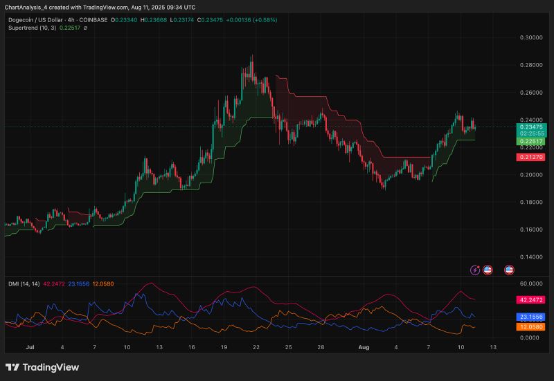 - 狗狗币(DOGE)价格:布林带、EMA 和超级趋势结构