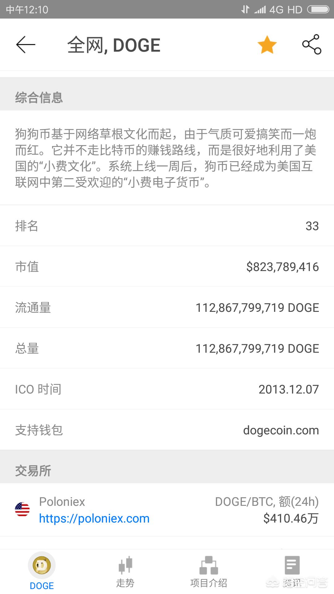 狗狗币是借助着感恩小费文化起来的一个区块链**,也是很早就获得比特币承认接纳的一个币。狗狗币总数量1100亿枚,目前**流通于市场。狗狗币的市值排名目前是第33枚。
