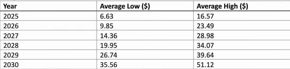 2025-2030年价格预测表