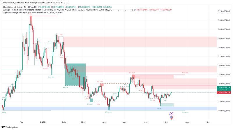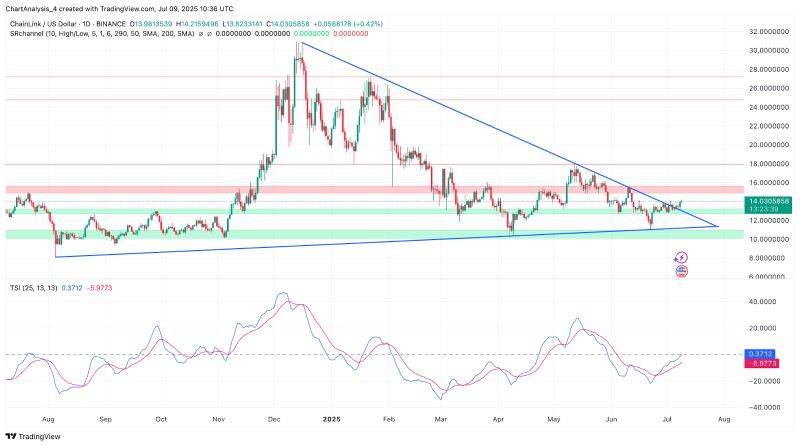 经过数月的区间波动后,Chainlink (LINK) 再次挑战 15 美元附近的阻力位。随着动量指标的增强和长期趋势线的收敛,LINK 可能正准备迎来重大的宏观突破。