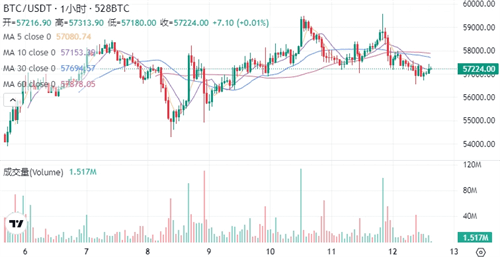 7月11日,比特币的开盘价为57481.56美元,盘中**触及59374.87美元,**下探至57359.88美元,**收盘于57741.75美元。该日24小时交易额为128.63亿美元,总市值为1.13万亿美元。