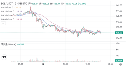 7月6日,SOL币经历了显著波动,开盘价为135.36美元,全天**价仅微涨至135.89美元,但**价大幅下跌至121.92美元,收盘时价格为134.75美元。该日交易额高达45.92亿美元,市值略降至597.66亿美元。