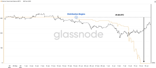“在密切关注德国政府抛售动向的过程中,我们观察到其持有的48.8k BTC在极短时间内被大量抛售,主要集中在7月7日至7月10日之间,超过39.8k BTC从特定钱包中流出。”Glassnode的报告指出,这一抛售潮发生在比特币价格触及54,000美元之后,但市场并未因此进一步下挫,反而显示出强劲的消化能力,标志着卖方压力的初步缓解。