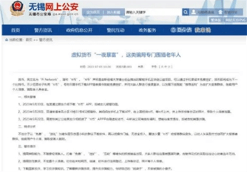 消息三:无锡警方紧急提醒:警惕Pi Network虚拟货币**,老年人成**目标