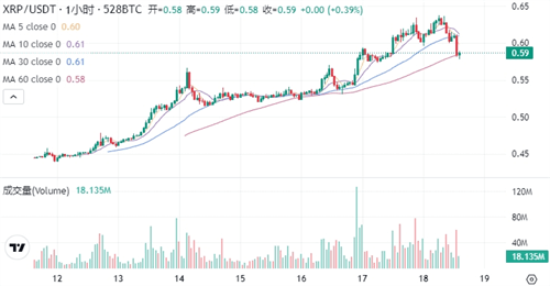 近期,XRP币价以0.59美元为基点,展现出强劲的复苏态势,预示着市场多头力量的显著增强。空头曾在0.57美元附近构筑防线,意图遏制上涨趋势,但7月16日的强劲突破**打破了这一僵局,显示出买家坚定的决心与实力。