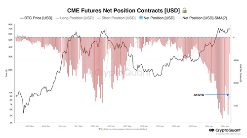 虽然这种情况已经出现了一段时间,但仅在上周,对冲基金就通过芝加哥商品交易所(CME)增持了超过10亿美元的比特币空头。