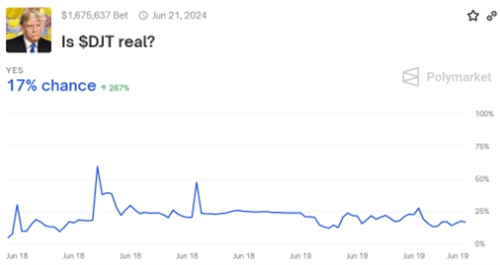 同时,备受瞩目的区块链侦探ZachXBT也是提交线索者之一。此外,去**化**平台Polymarket显示,关于DJT**是否“真实”由特朗普或其家人推出的赌注总额已接近170万美元。