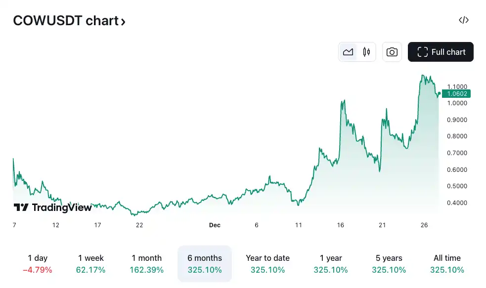 这种双向的市场推动效果直接带动了 $COW 的价格飙升。