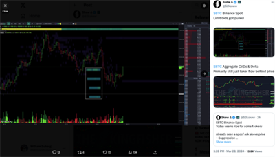 在当日的交易中,知名交易员Skew对市场可能出现的虚假价格行为提出警告,指出某些价格区间内的新出价支持可能存在操纵流动性的嫌疑。尽管如此,比特币价格仍展现出强劲的上涨动能。