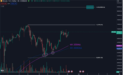 此前一日,由于美国加密货币交易所Coinbase与监管机构美国证券交易委员会(SEC)之间的法律纷争,比特币价格曾短暂跌破69000美元关键支撑。然而,买家迅速介入,有效阻止了跌势的进一步扩大,并助力价格重回上升轨道。