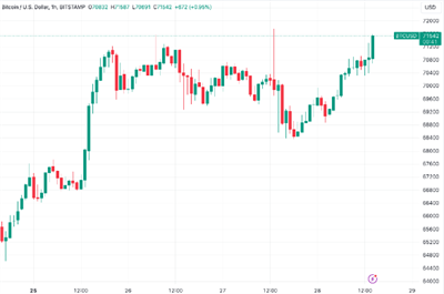 在本周华尔街**一个交易日中,比特币价格展现出顽强上攻态势,多头拒绝屈服于市场紧张情绪,推动价格攀升至更高水平。据Cointelegraph Markets Pro和TradingView数据显示,BTC价格走势强劲,成功突破71000美元重要阻力位。