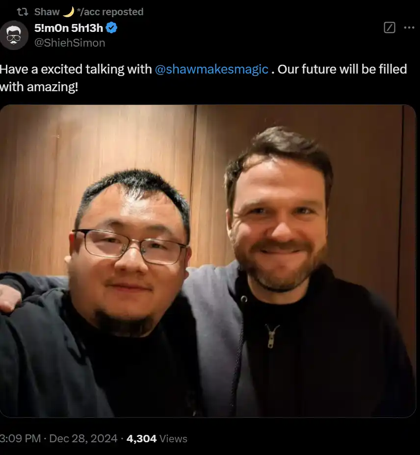 编者按:这篇专访从 Shaw 的**之行讲起,Shaw 回顾了早年经历与命运转折,分享了「Eliza」诞生背后的故事和 ai16z 的成功密码,深入讨论了 AI 对齐与加密领域智能体的应用,同时解读了「Eliza Drama」和 Skelly 争议的影响。Shaw 畅想怀俄明「DAO Town」的构想,坦率谈论公众人物的挑战,并对 2025 年 DeFi 智能体和 Crypto AI 生态的未来提出了深刻见解,带来启发性的思考。
