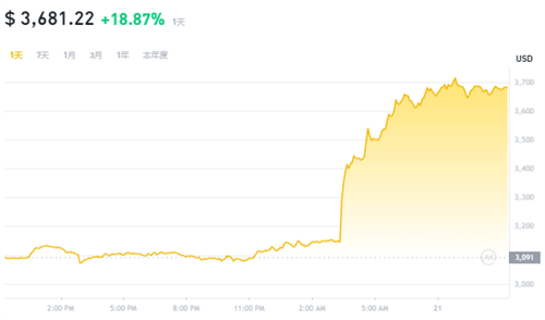 以太坊势头强劲,持续冲破3700美元的重要关口,根据OKX于5月21日发布的**行情数据,其价格在过去24小时内涨幅超过了20%,目前已达到3681美元的高位。这一显著增长再次彰显了以太坊在加密货币市场的强劲实力和巨大潜力。
