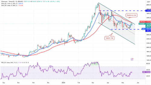 以太坊价格在5月20日触及阻力线后出现回落,但多头力量坚守阵地,成功阻止价格跌破关键的20日均线(3,048美元)。这一表现显示了市场对于以太坊的强烈信心,同时也预示着未来可能的趋势变动。