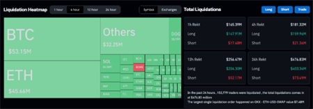 据Coinglass数据显示,比特币的暴跌导致超过1.65亿美元的杠杆头寸被平仓,其中5000多万美元的比特币多头和4000多万美元的以太坊(ETH)多头占了大部分。