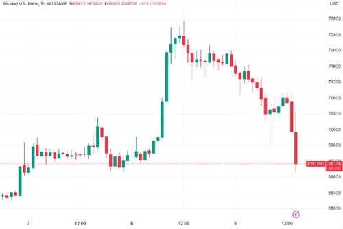 根据Cointelegraph Markets Pro和TradingView的数据,比特币/美元的价格在华尔街开盘后跌破了6.9万美元。