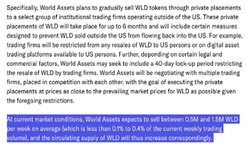 Worldcoin的**发行子公司World Assets计划每周通过定向私募的方式,向特定机构出售多达150万个WLD**,预计每周销售价值将达到820万美元。这一策略旨在扩大WLD**的流通量,进一步推动其在全球范围内的应用与接受度。