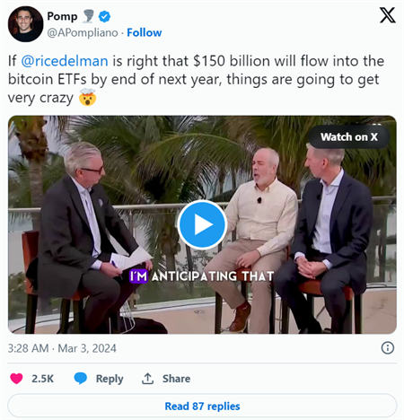 对于比特币当前的涨势,市场分析师普遍认为,这与即将到来的减半事件以及最近推出的比特币现货交易所交易基金(ETF)的强劲需求有关。减半事件预计将于2024年4月进行,而在此之前,比特币已经展现出强劲的上涨势头。