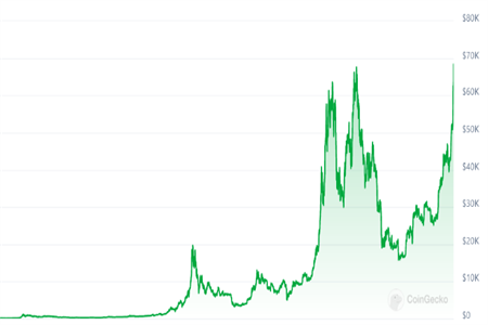 这一波涨势引发了市场对于比特币在创历史新高后表现的广泛关注。历史数据显示,比特币曾在短时间内实现过惊人的涨幅。例如,在2013年3月,比特币的价格在短短10天内从34美元飙升至88美元,涨幅高达158%。类似的情况也发生在2020年12月,当时比特币在短短几个月内从200美元飙升至1000美元,并在此后继续上涨至近20,000美元。