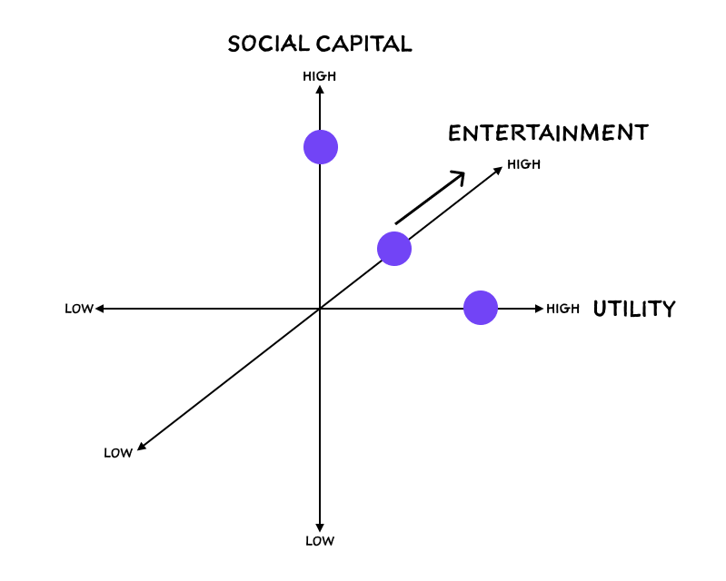 Eugene Wei从三个方面评估了社交网络的实力:社会资本、娱乐和效用。在他的文章中,他关注社会资本和效用。