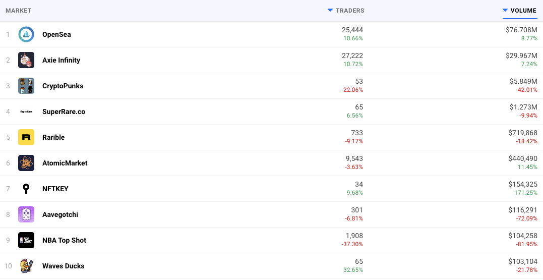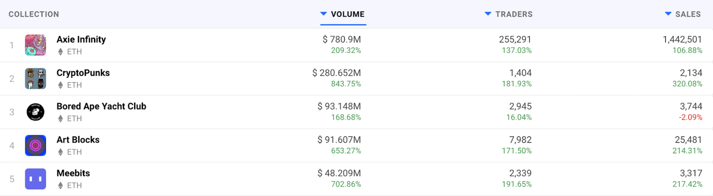 然后,在过去的一个月左右,有趣的事情发生了。NFT,它回来了。在过去24小时内,仅在两个交易市场-OpenSea和;Axie infinity-完成了1.06亿美元的交易。