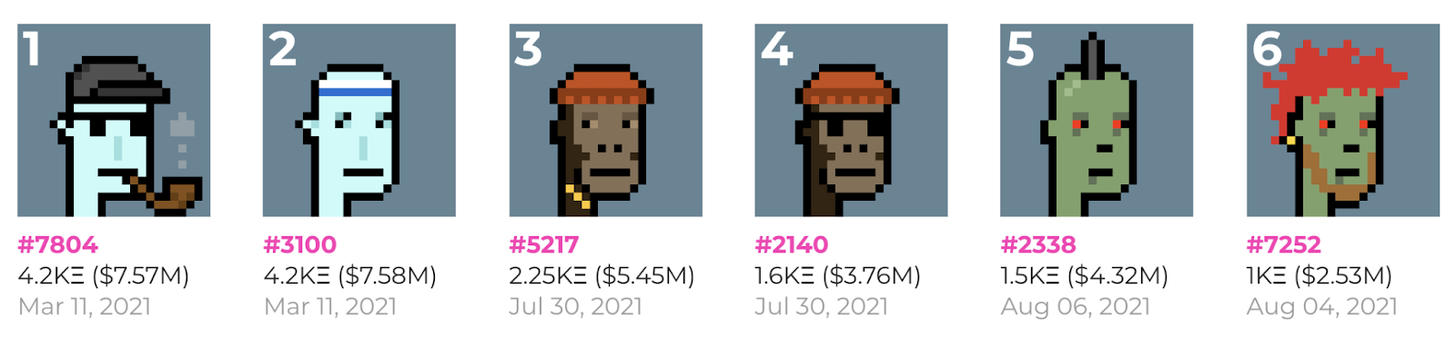 猿类是一个主题,即使在bayc场景之外。历史上四个最昂贵的加密朋克中有两个也是类人猿: