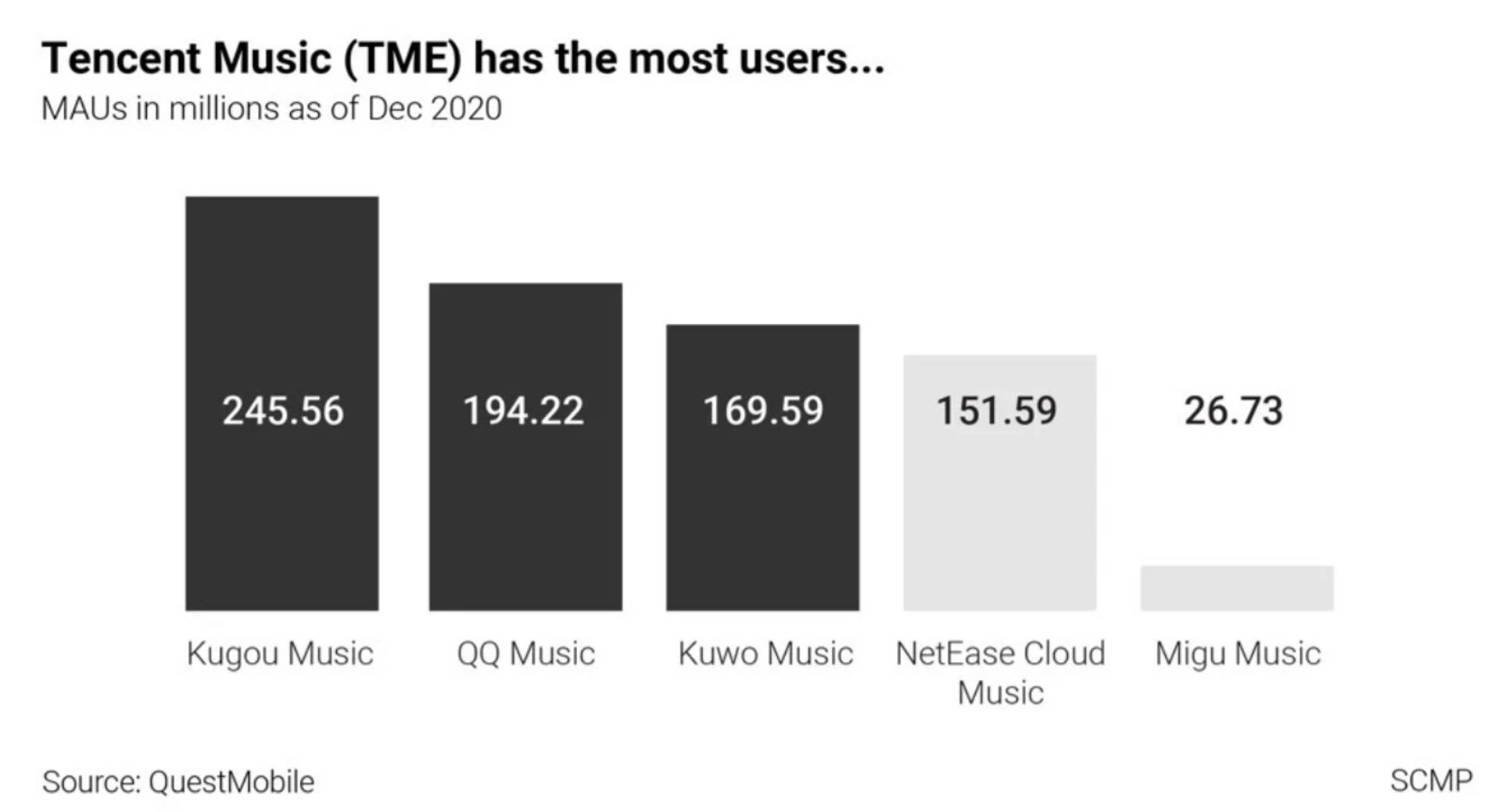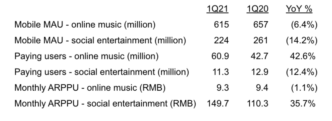 腾讯音乐的2021年前半年可以四个字来归纳:背腹受敌。