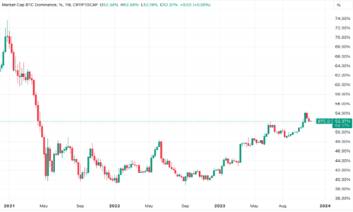 尽管比特币在整个密码市场的份额仍占主导地位,但分析师建议不要把这看作是替**相对**的标志。