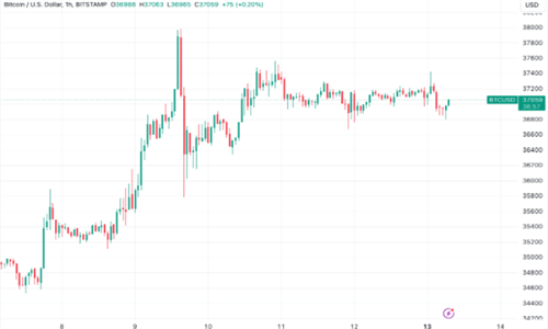 在亚洲交易日期间,BTC/美元跌至37,000美元以下,按数据显示,整个周末保持在原有的交易区间。