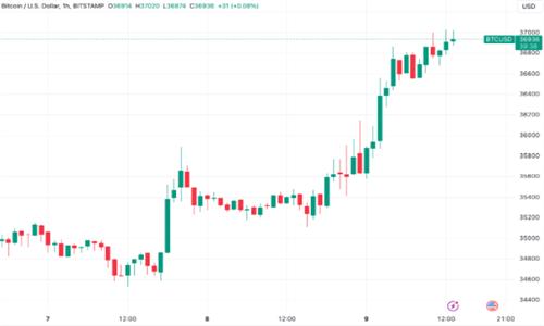 数据来自 电汇市场 和 交易景 显示BTC/美元在37,000美元后被抢 最初突破 在华尔街开门之前。