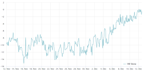 交易员也应该分析 期权市场 衡量最近的调整是否抑制了投资者的乐观情绪。25%的三角洲倾斜是一个很有说服力的指标,当套期保值的服务台和市场制造者为上移或下移保护而收取过高的费用。
