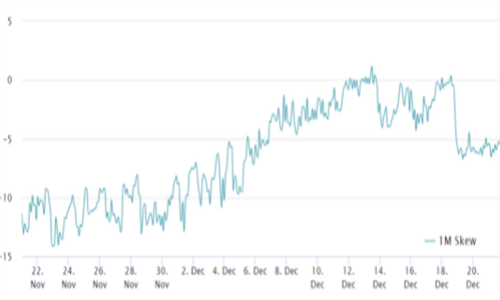 如果交易者预计比特币价格会下跌,偏斜指标将上升到7%以上,而兴奋期往往导致负7%的偏斜。