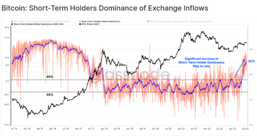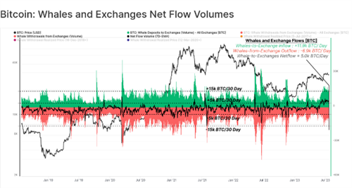 随着短期持有者变得越来越活跃,比特币鲸鱼占据了自 2022 年 6 月以来最多的交易所流入量,比特币 $29,083新数据显示,2023 年鲸鱼买卖主要来自投机投资者。
