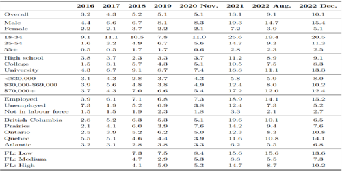 上图显示,到 2022 年 8 月,加拿大的比特币拥有量下降至 9%。然而,到年底,比特币的采用率略有上升至 10%,比特币拥有量的下降并不意味着投资者正在分散他们的资金对其他加密货币的投资。报告内容如下:
