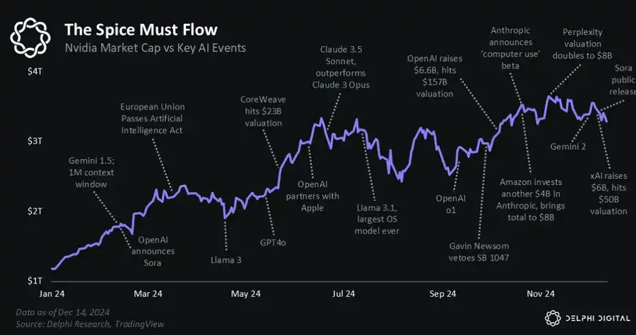 在过去的一年里,AI 已成为各行业的基础,英伟达超越苹果成为全球最有价值的公司,这不仅仅是一个头条新闻,它标志着 AI 的崛起。OpenAI 达成 1570 亿美元的估值,也是一个重要的里程碑,凸显了市场对 AI 作为经济巨头的信心。
