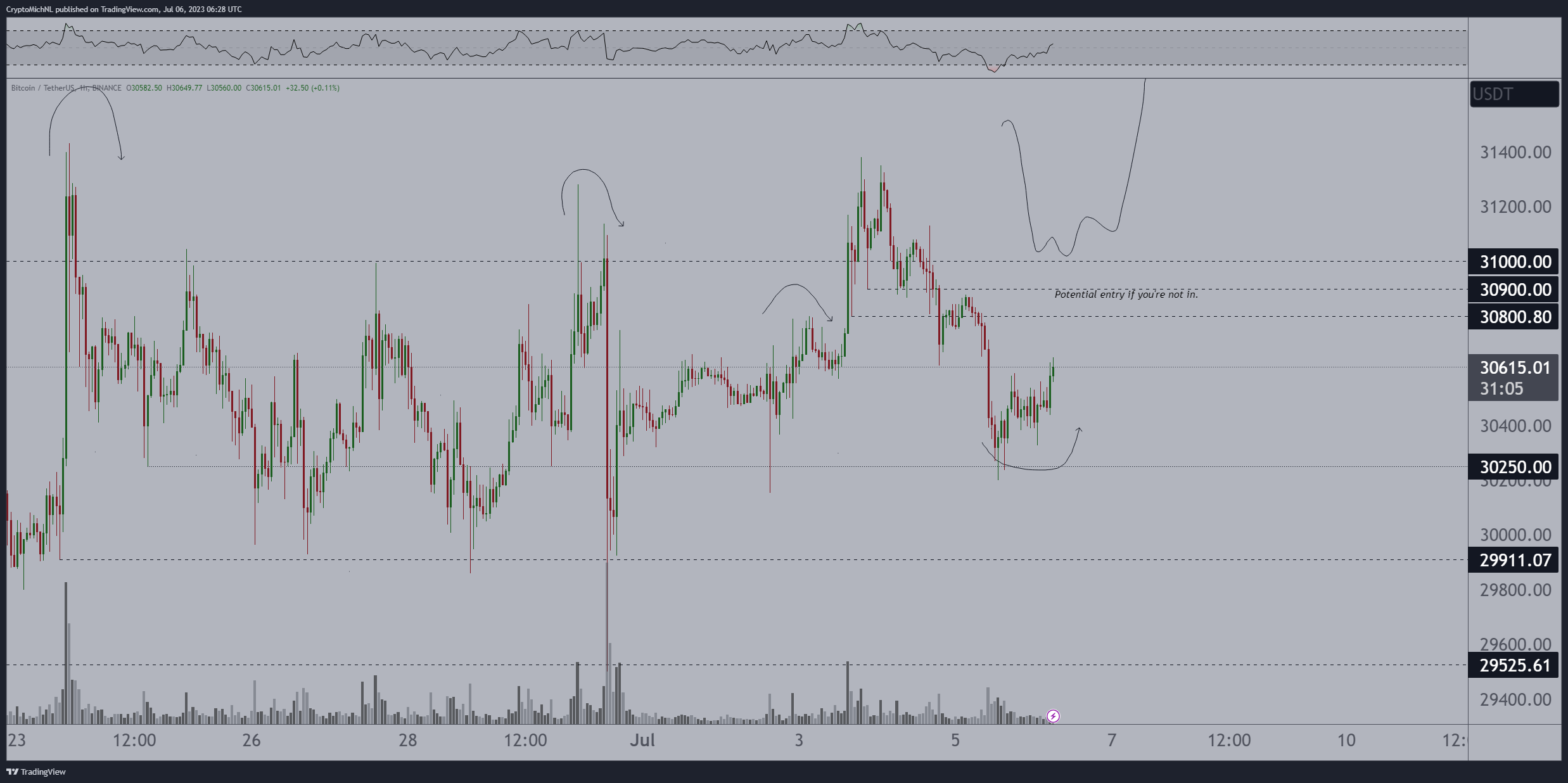 比特币由于关键支撑位的新反弹提振了多头,7 月 6 日触及 2023 年新高。