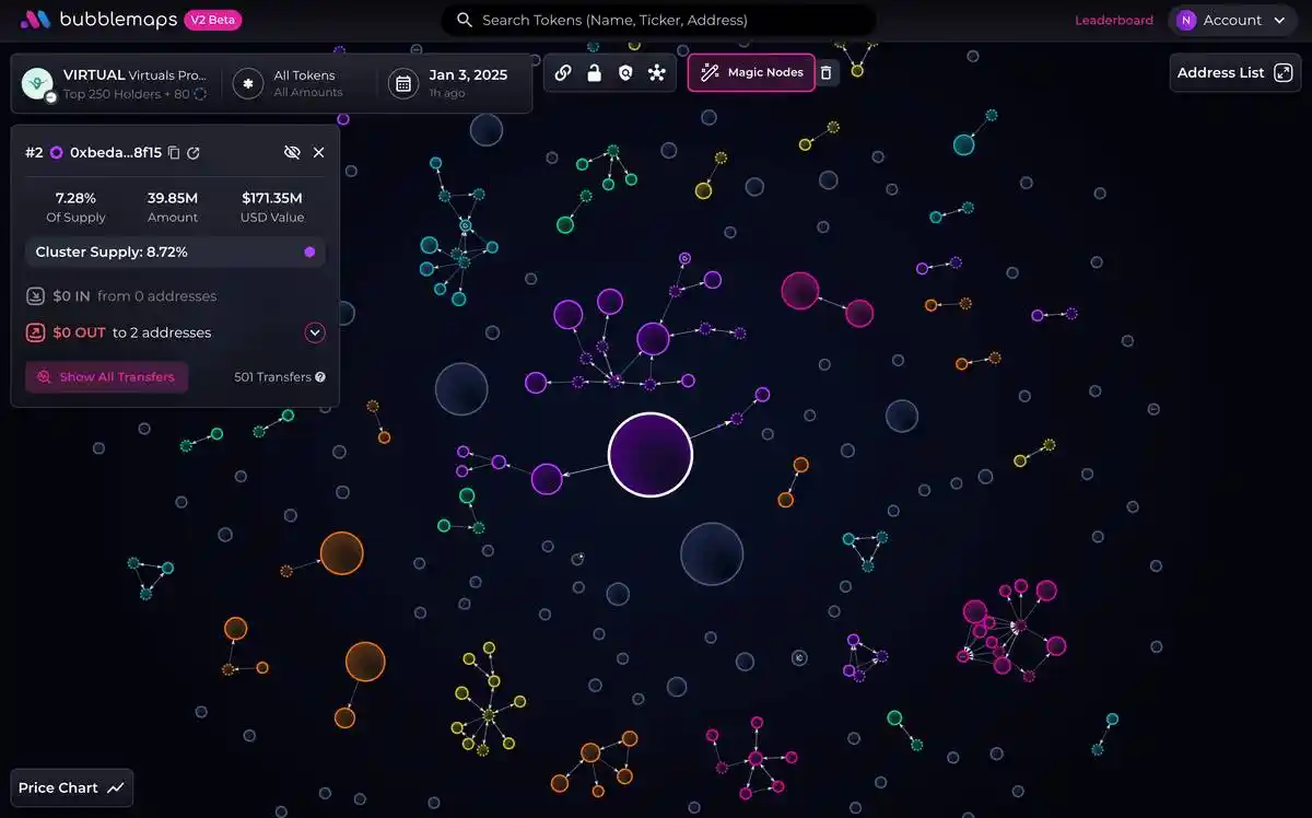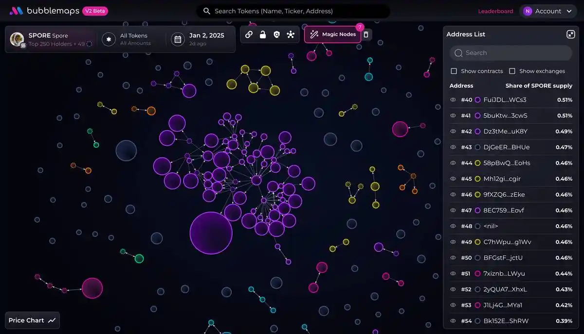 钱包 8EC759 向多个持有人发送了 SOL,形成了一个占总供应量 40% 的集群。