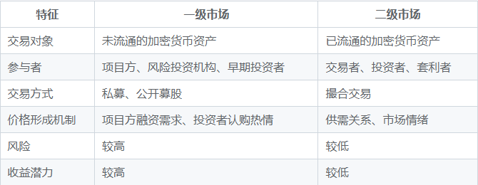 (1)交易对象:**市场交易的是尚未流通的加密货币资产,通常通过****发行(IEO)或**交易所发行(IEO)进行。